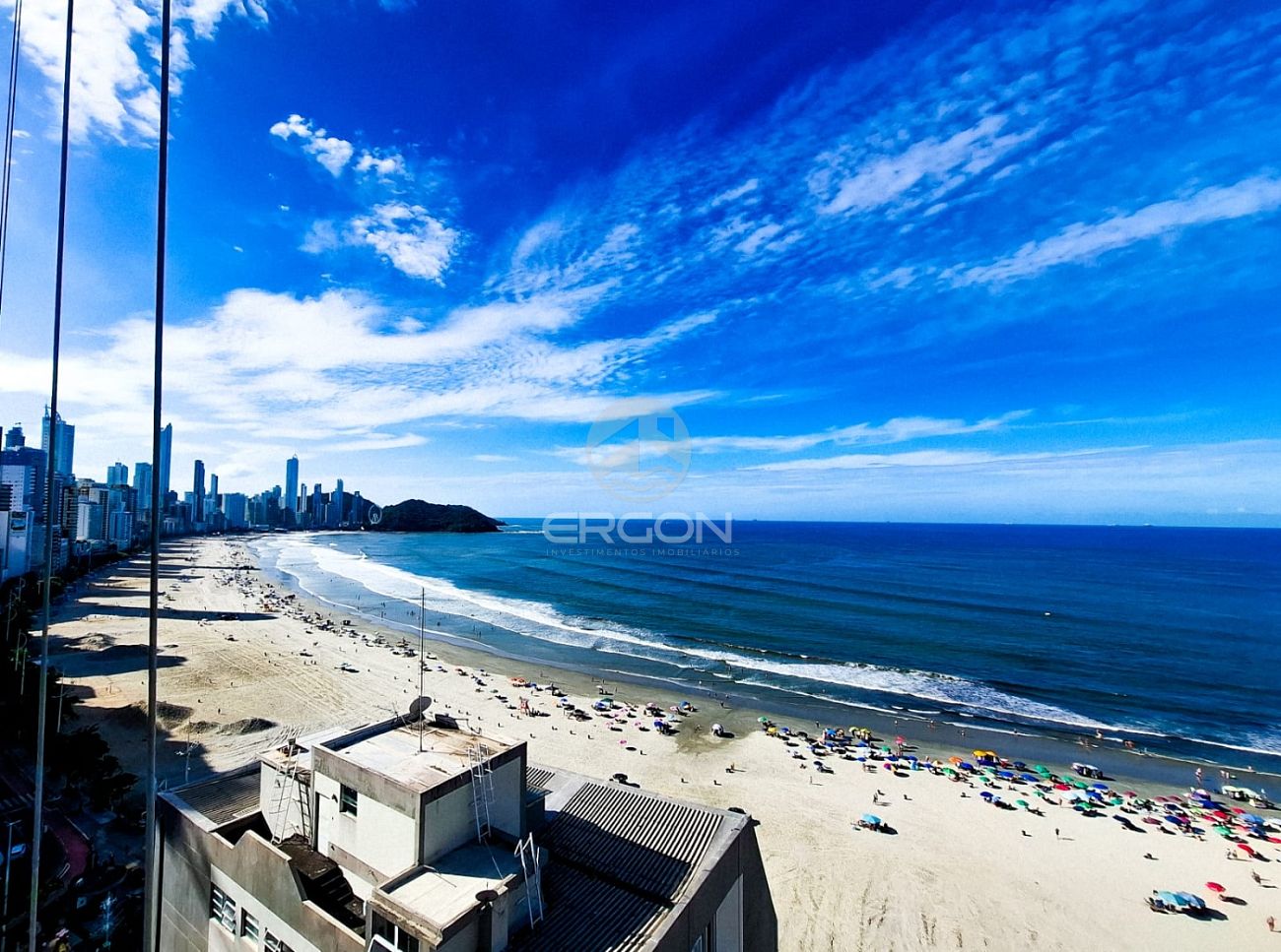 O imóvel possui aproximadamente 170 m², com 4 dormitórios (sendo 1 suíte), sala ampla com vista panorâmica para o mar, 3 quartos de frente para a praia e excelente ventilação natural. A vista é um dos grandes destaques, permitindo enxergar toda a Praia Central, a roda gigante, a Ilha das Cabras e grande parte da orla de Balneário Camboriú.