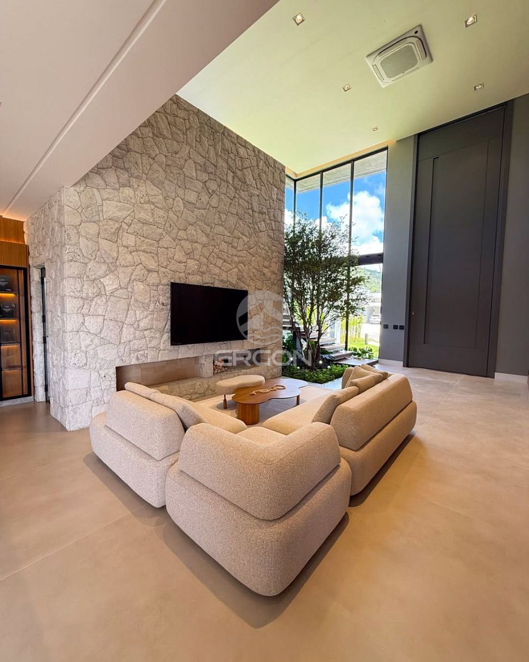 Casa localizada no Caledonia Private Village, com projeto que combina arquitetura contemporânea com design biofílico, trazendo elementos naturais que não são apenas estéticos: eles mudam a forma como você vive o espaço.