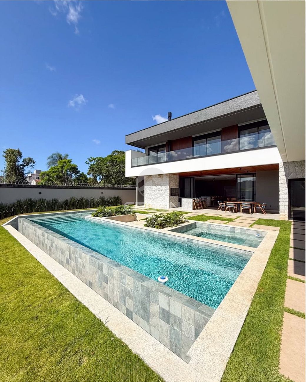 - ⁠Mezanino com apoio funcionalPiscina com borda infinita + hidromassagem + fireplace